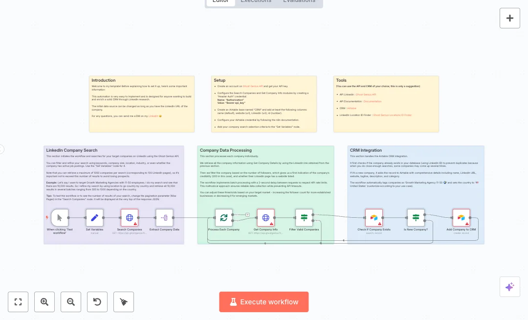You need accounts for Ghost Genius and Airtable, an API key, and an Airtable base with the listed fields. Start with a small page limit to test, then raise it once the filters return the right volume. Use it for agency prospecting, regional lists, or size based targeting while saving hours and keeping data clean.