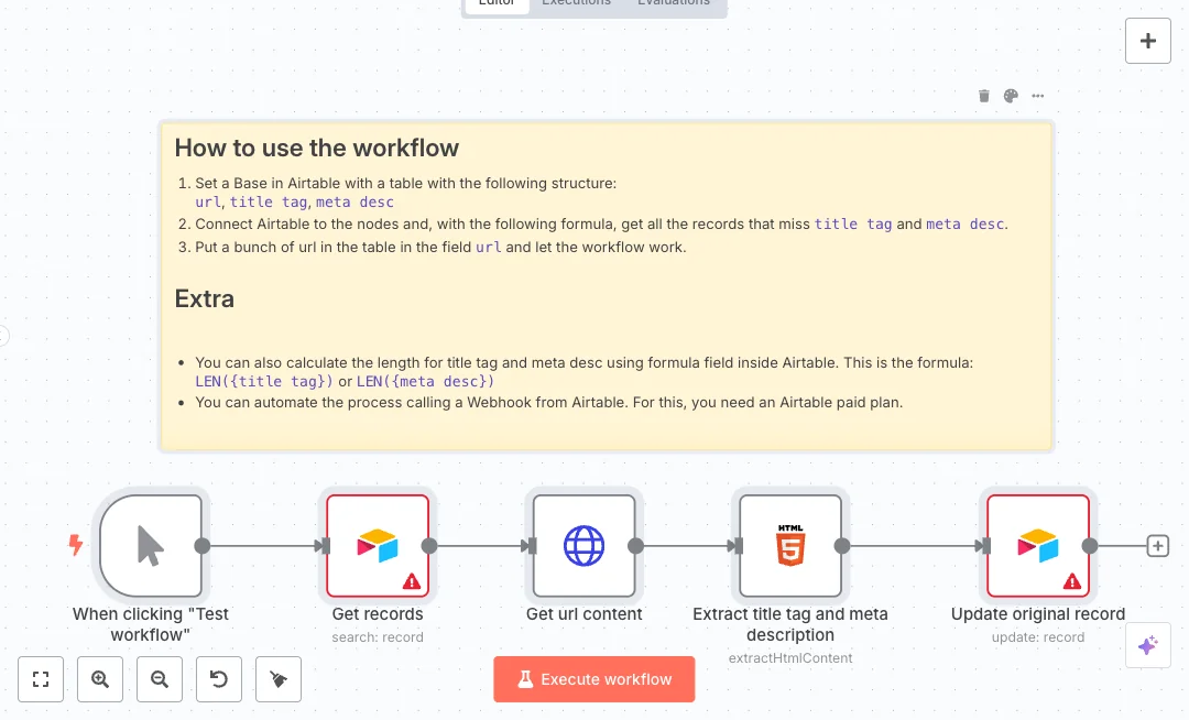 Fill missing SEO titles and meta descriptions in your Airtable base without manual copy and paste. Ideal for marketers and content teams that keep a list of URLs and need complete metadata for audits, briefs, and site updates.