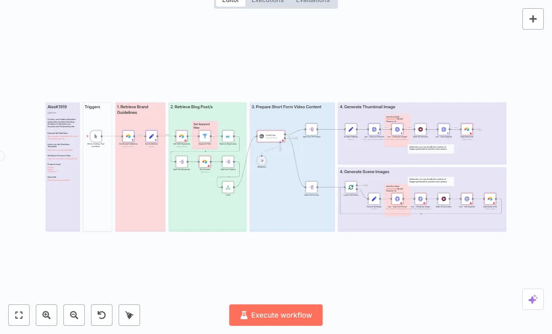 You need an Airtable base for guidelines, keywords, content, and assets, plus API keys for OpenAI and Leonardo AI. Expect large time savings in storyboarding and image creation, and stronger brand consistency. Great for social teams, YouTube Shorts editors, and agencies that need steady output from existing blogs.