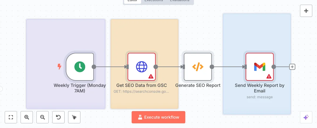 Get a clear SEO snapshot in your inbox every Monday. The setup pulls search performance from Google Search Console and emails a simple report through Gmail. It helps marketing teams track top queries without opening dashboards.