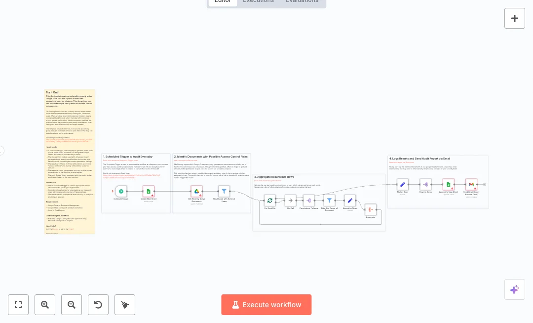 Setup is simple if you use Google Drive, Google Sheets, and Gmail. Point the sheet node to your report spreadsheet, set the run time, and adjust the date range or allowed domains if needed. Teams usually cut review time from hours to minutes and can run daily or weekly checks depending on risk. This is useful for client facing teams, agencies, and any group that shares files often.