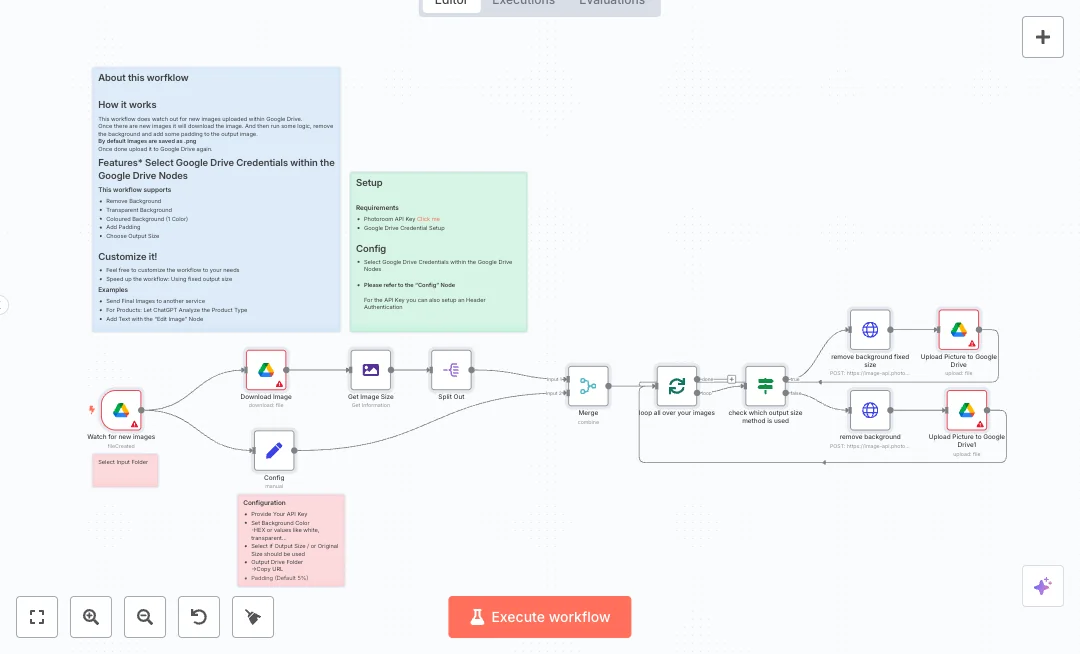 Setup needs a Google Drive connection and a Photoroom API key. Expect faster product page launches, quicker ad builds, and less time in manual editors. Use it for catalogs, marketplace listings, social ads, and pitch decks. Follow the steps to set folders, add the API key, choose size rules, and test with a sample upload.