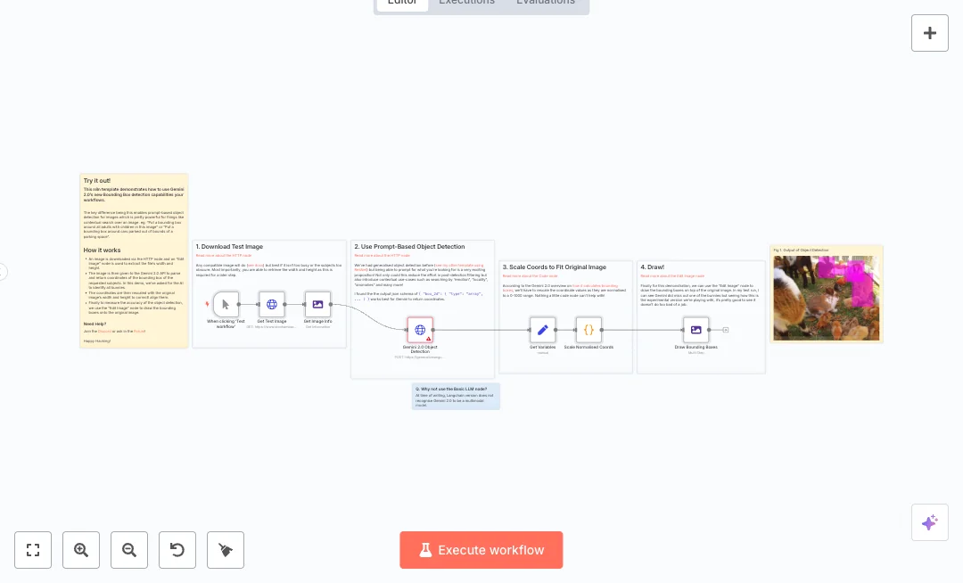 You start it on demand. The flow downloads an image, reads its width and height, and sends the file with a clear prompt to Google Gemini. Gemini returns bounding boxes in a simple JSON format with normalized values. The workflow then scales those values to real pixels and draws colored boxes on the original picture. Because the prompt controls what is found, you can switch from rabbits to people, cars, or store displays without code. This cuts manual clicking and reduces mistakes from eyeballing image details.
