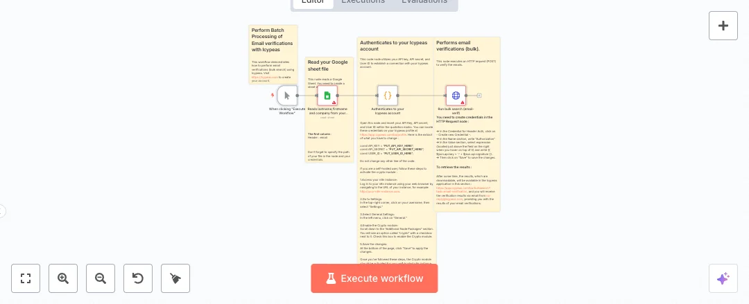 Set up a sheet with a single email column and connect your Google account. Add your API details in the code node and create a header auth credential in the HTTP Request node using the given expression. Teams typically cut list prep from an hour to a few minutes and lower bounce risk on first sends. Use it for cold outreach lists, webinar sign ups, and CRM exports where email quality matters.