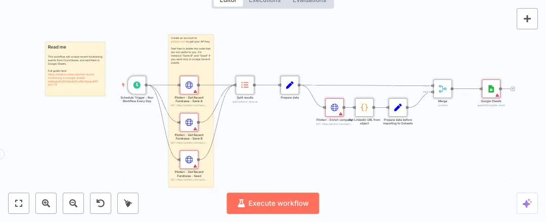You need a Piloterr API key and access to a Google account. Expect a new set of rows each day, with clean fields ready for email, calls, and ads. Teams use it to spot hot accounts, plan outreach based on round size, and trigger follow up within 24 hours. Setup takes minutes and removes hours of manual research every week.