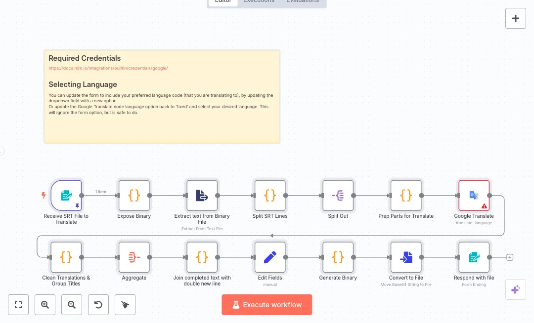 Setup needs a Google account with access to Google Translate via n8n credentials. You can edit the form to add more language options or set a fixed language in the Translate node. Expect to cut manual work from hours to minutes while keeping timing accurate. Ideal for YouTube channels, webinars, training videos, and social clips that need fast localization.