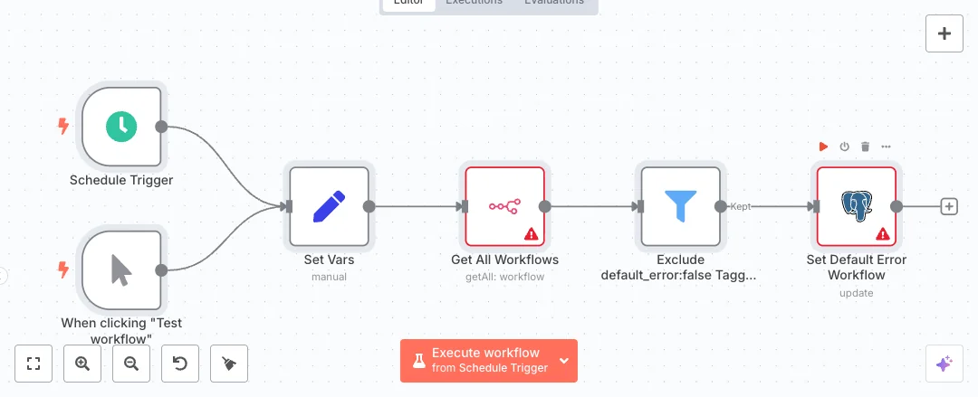 Setup needs access to the n8n API and the Postgres database that stores workflow settings. Choose the error handler workflow you want to apply and enter its ID in the Set node. Add the tag default_error:false to any workflow that should keep a custom error path. Expect faster incident response, fewer missed alerts, and lower maintenance work. This is useful for teams that run many flows and want steady governance across the board.