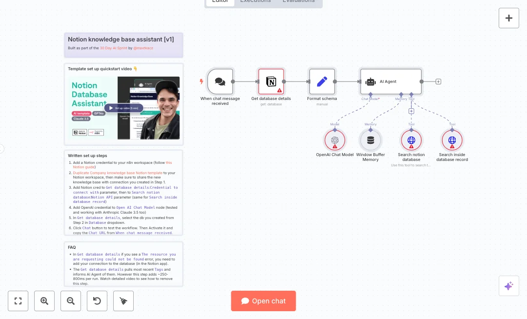 You only need Notion and an OpenAI API key, then point the flow to your database. Expect faster answers and fewer repeat questions, which saves time for your team every day. Use it for IT policies, product FAQs, and team playbooks in one simple chat. After testing, activate it and share the chat URL with your staff for quick access.