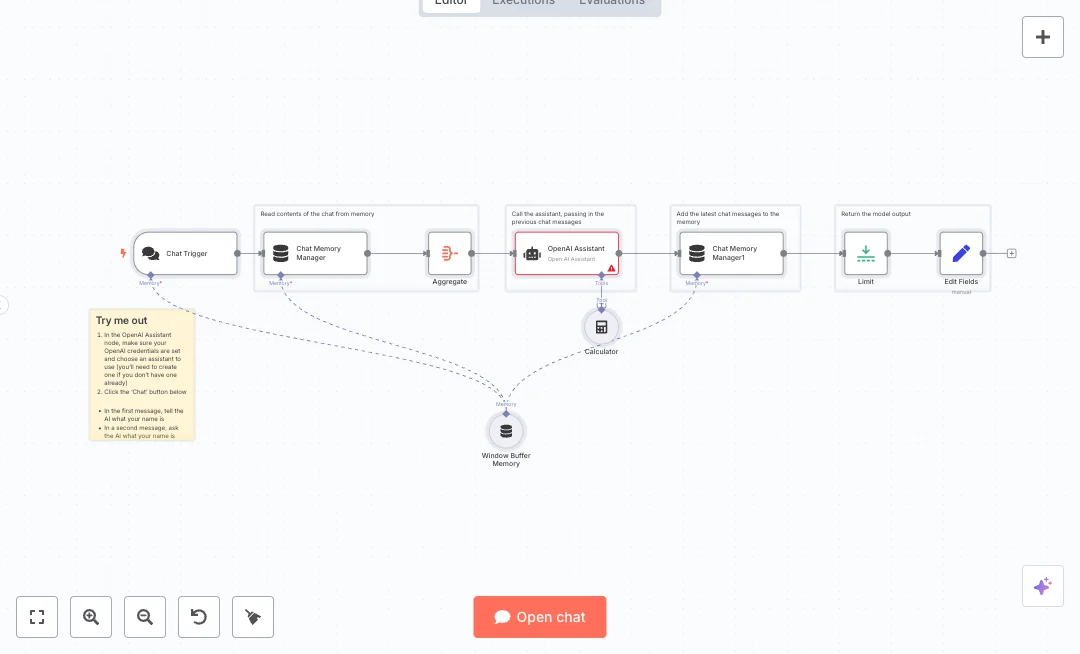 Bring an OpenAI API key and an Assistant set up in your account. Expect faster replies and fewer repeat questions for your team. Good fits include website chat pilots, internal help desks, and FAQ style support. Setup is simple: add your OpenAI credential, select your assistant, confirm memory settings, and run a short conversation test to verify name recall and math accuracy.