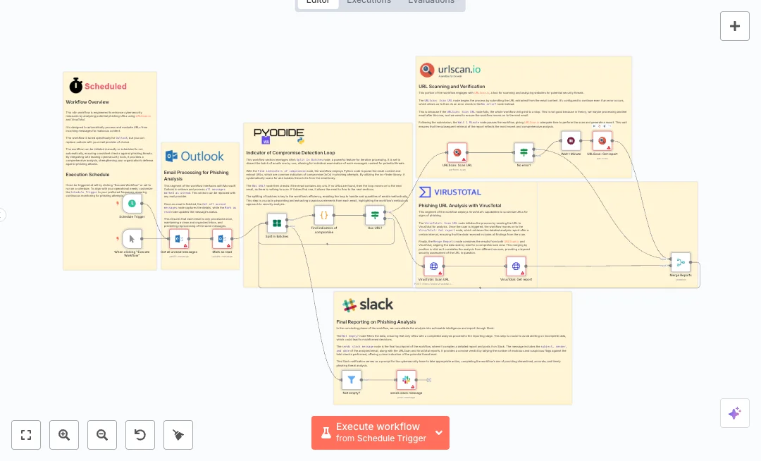 Setup is simple with Outlook, Slack, VirusTotal, and urlscan.io accounts. Pick your Slack channel, set the schedule, and tune the wait time if you need more time for scans. Expect faster triage, fewer missed alerts, and more consistent checks. It fits service desks, security analysts, and managed service providers that need quick phishing decisions.