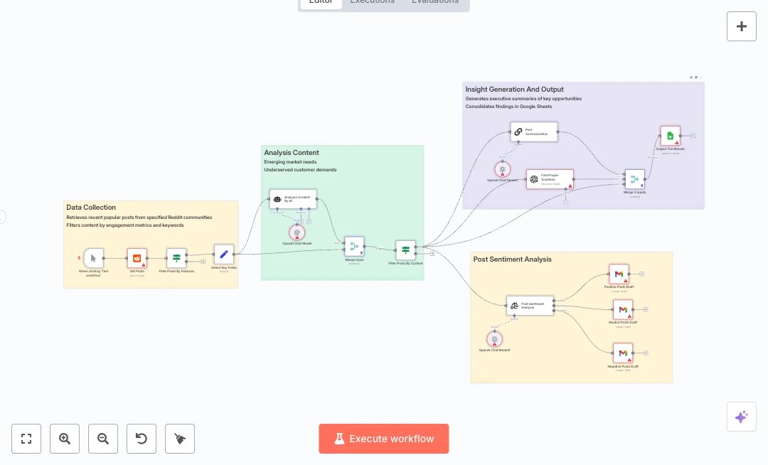 Setup is simple with Reddit, OpenAI, Google Sheets, and Gmail accounts. Point the Reddit node to your communities, map the Sheets columns, and connect Gmail to create drafts. Expect faster research cycles and clearer decisions. Great for market research teams, product managers, and sales teams who want to spot pain points and respond with helpful ideas.