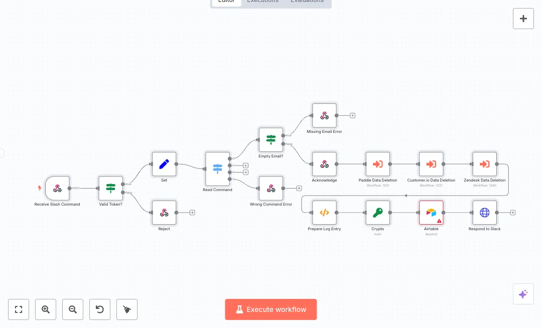 Setup needs a Slack slash command and an Airtable base with a Log table. Expect faster handling, fewer errors, and clean records for audits. It works well for privacy compliance, offboarding, and customer data requests.
