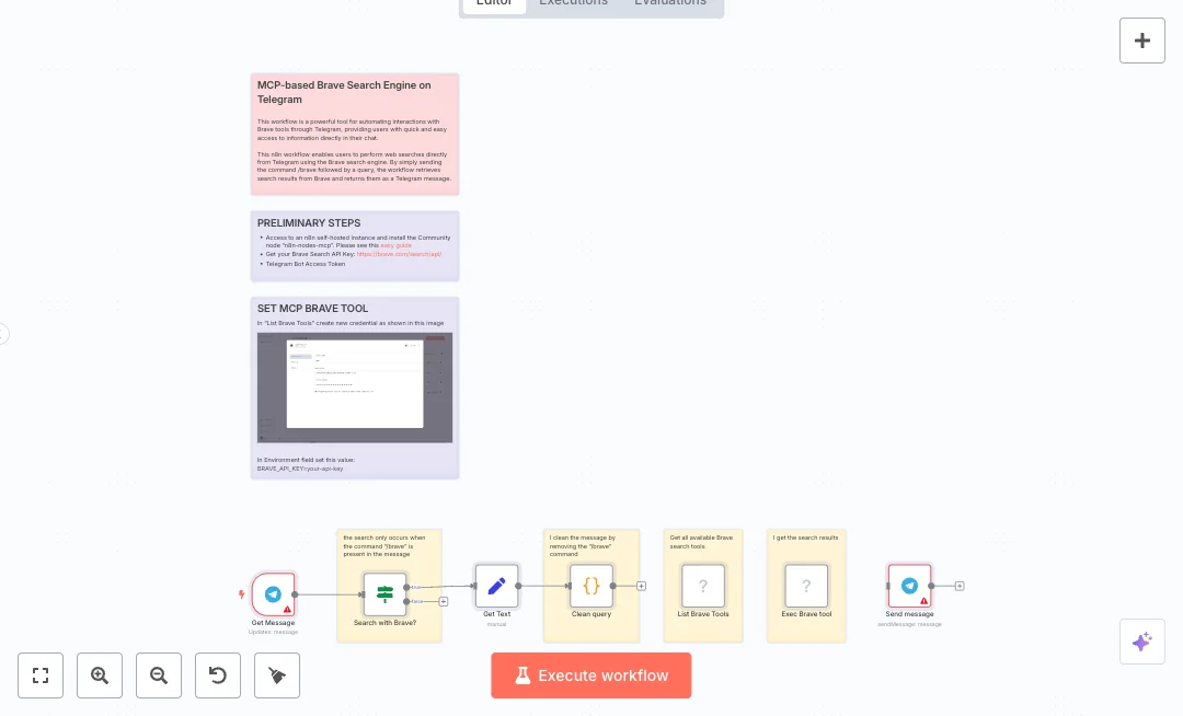 The setup cuts context switching and gives quick facts for internal updates, content drafts, and quick checks in group chats. You will need a Telegram bot token and a Brave Search API key. Install the MCP community node, set the BRAVE API KEY environment value in the credential, and link the Telegram and MCP nodes in n8n. Expect faster answers, fewer browser tabs, and quicker team discussions. See the Tools Required section for account links.