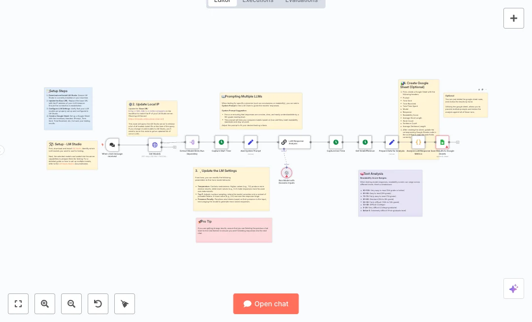 Setup needs LM Studio running with your chosen models and a Google Sheet if you want logs. Update the base URL to your local server and tune temperature, top p, and presence penalty to match your test plan. Most teams can cut manual comparisons from an hour to a few minutes. Expect faster evaluations and fewer copy paste steps, so you can pick the best model for FAQs, training notes, release summaries, or help center text.