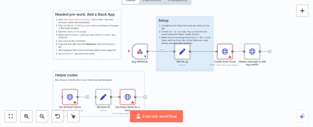 You will need a Slack app with a slash command that points to the n8n webhook URL, plus a Linear account with access to your workspace. Expect bug capture time to drop from minutes to seconds and fewer lost reports across channels. Useful for product squads, QA groups, and support leads who report issues from chat without switching tools.