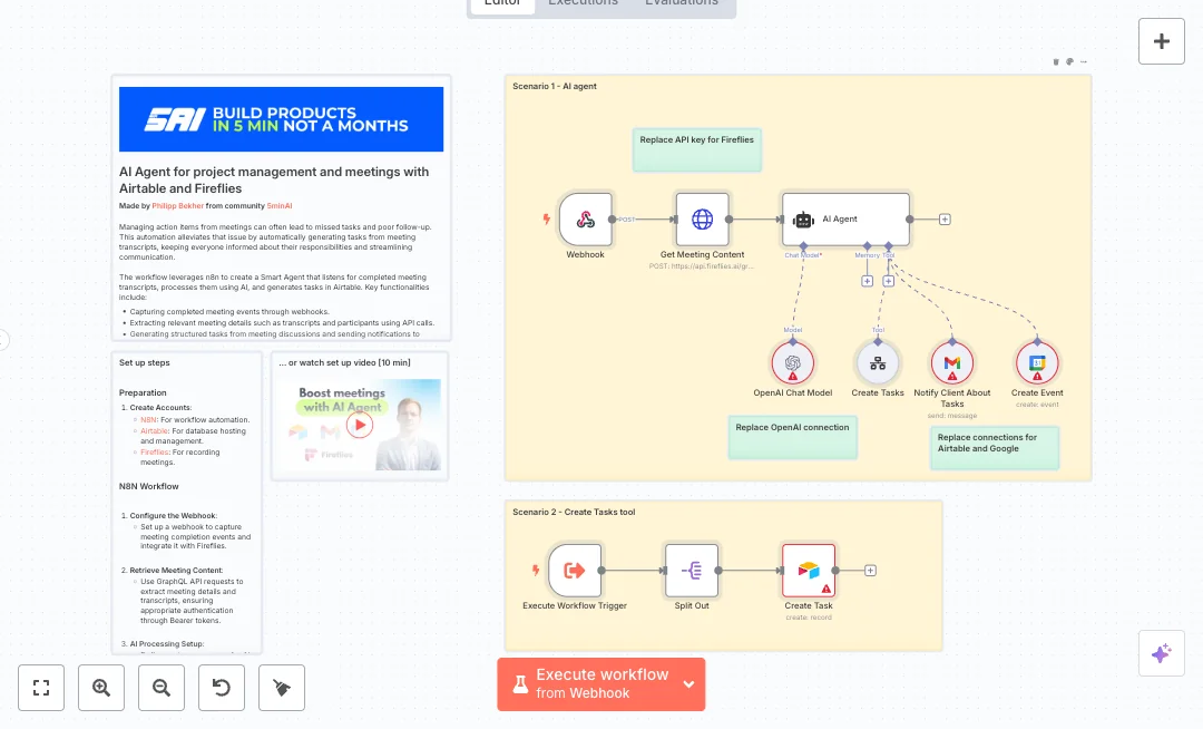 You only need accounts for Fireflies, OpenAI, Airtable, Gmail, and Google Calendar, plus tokens and OAuth. Replace the sample name and email, connect your bases and calendars, and run a test meeting. Most teams cut their admin time from about one hour per call to under ten minutes and keep clients informed without manual typing. Common uses include sales demos, onboarding calls, and weekly project check ins.