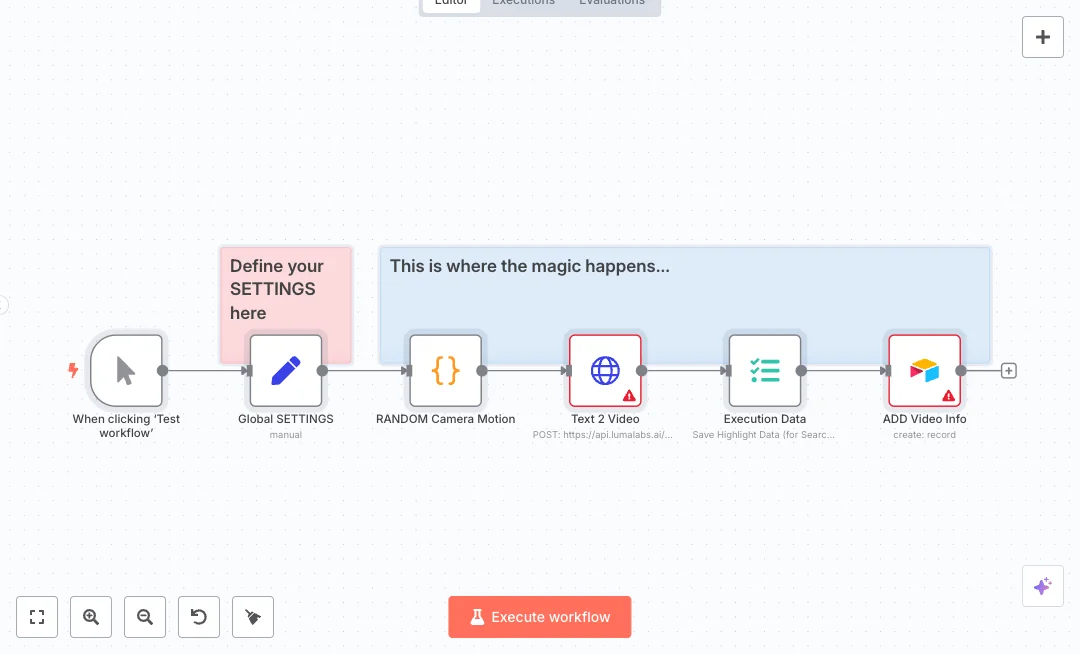 You click run, set a master prompt and aspect ratio once, and the flow adds a random camera move to keep each shot fresh. The HTTP request sends the combined prompt to Luma AI model ray 2. The response is prepared for mapping, then key fields like model, aspect, duration, and the original prompt are saved to Airtable. This creates repeatable creative testing with less guesswork and no manual copy and paste.
