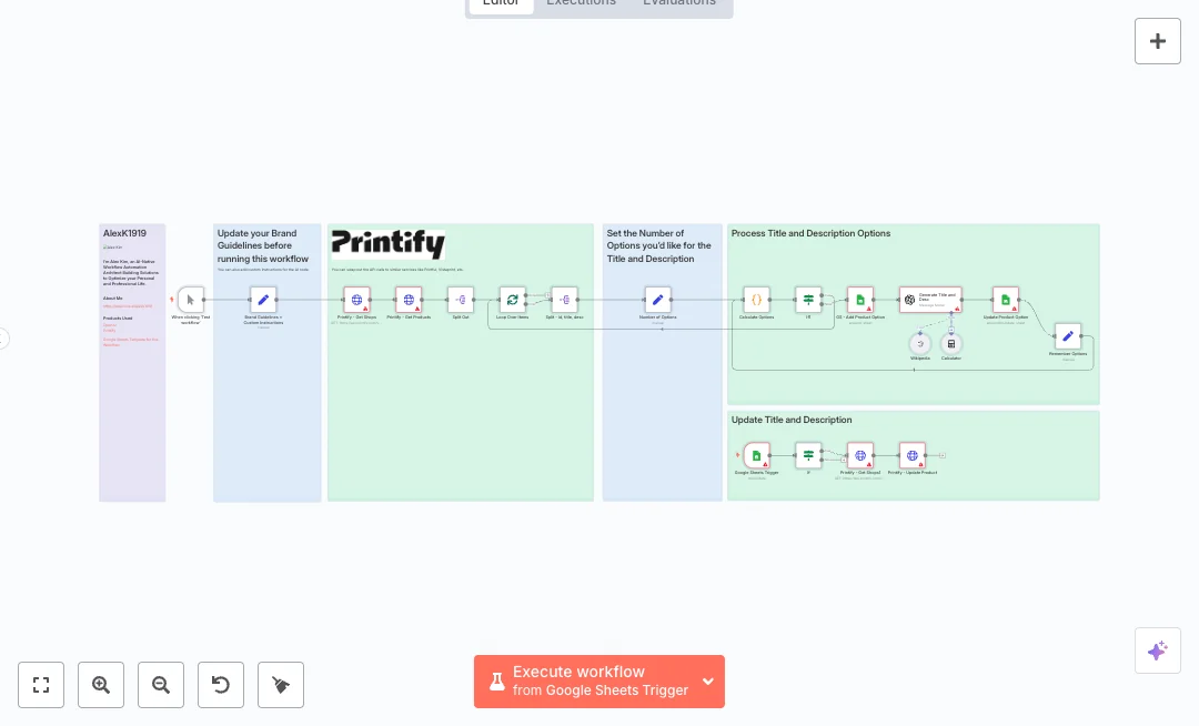 You need a Printify API token, a Google Sheet, and an OpenAI API key. Update the brand guidelines and set how many options to create before running it on your catalog. Expect faster product refreshes, consistent tone, and better SEO on product pages. Great for seasonal launches, bulk edits, and testing copy across many items.