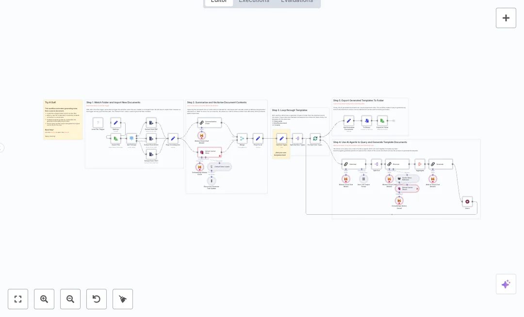 New files start the flow with a local folder watcher. The file type is detected and text is pulled from PDF, DOCX, or TXT. The text is split into smaller parts, embedded with Mistral Cloud, and saved in a Qdrant collection. A retriever brings back the most relevant parts for each prompt. Mistral chat models ask and answer questions, then draft each template. An output parser and aggregator combine answers into final text, and a short wait helps avoid rate limits. The loop runs for every template you set, so you get multiple files from one source.