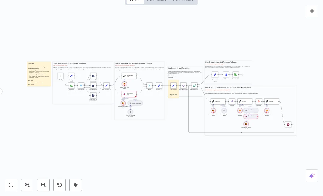 Here is how it works. A local folder watch picks up new PDFs, Word files, or text files. The content is extracted, split into readable chunks, and turned into vectors using Mistral embeddings. Those vectors are stored in a Qdrant collection for fast search. A set of prompts guides Mistral chat models to pull context from Qdrant and create three templates. The flow loops through each template, collects results, and writes clean markdown files next to the original document.