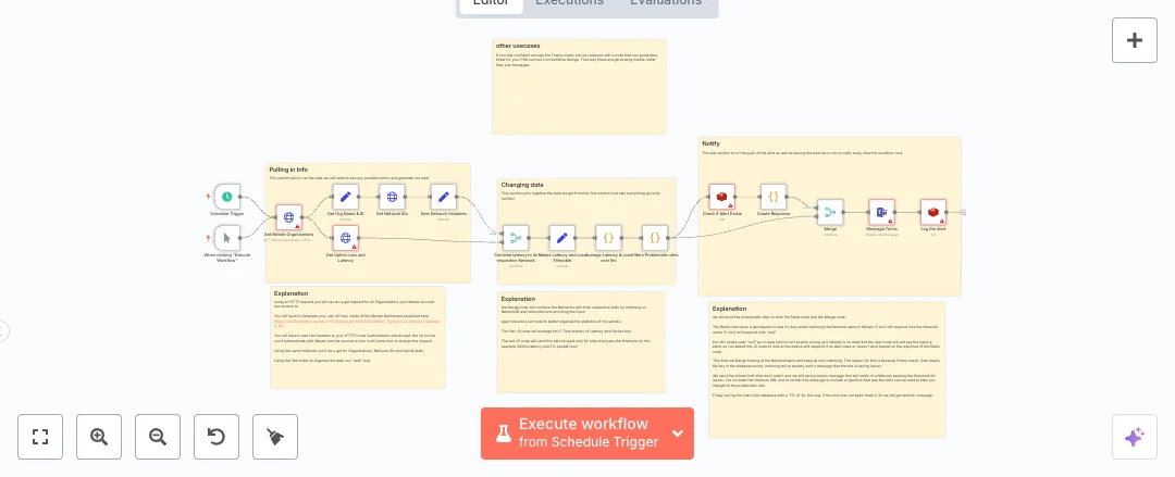 You will need a Meraki API key, a Microsoft Teams connection, and a Redis database. Adjust the latency and loss limits to match your SLA and edit the schedule to your support hours. Expect fewer manual checks, quicker triage, and a clean handoff to the team channel. This works well for MSPs, IT operations, and companies with many branches.