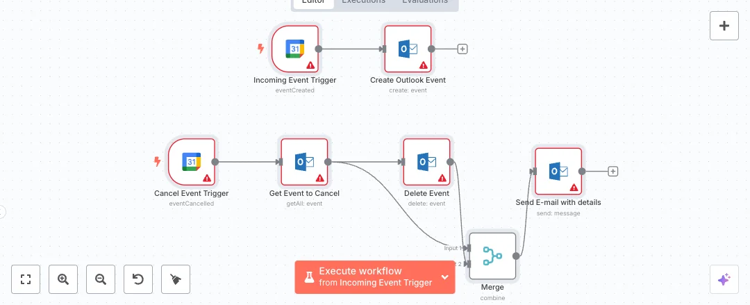 Set up OAuth in n8n Cloud for Google Calendar and Microsoft Outlook, select the correct calendars, and update the email recipient. Expect to cut calendar admin time and avoid double booking. This fits solo users and teams who want a simple one way sync from Google to Outlook for new items and cancellations, with clear email alerts when something is removed.