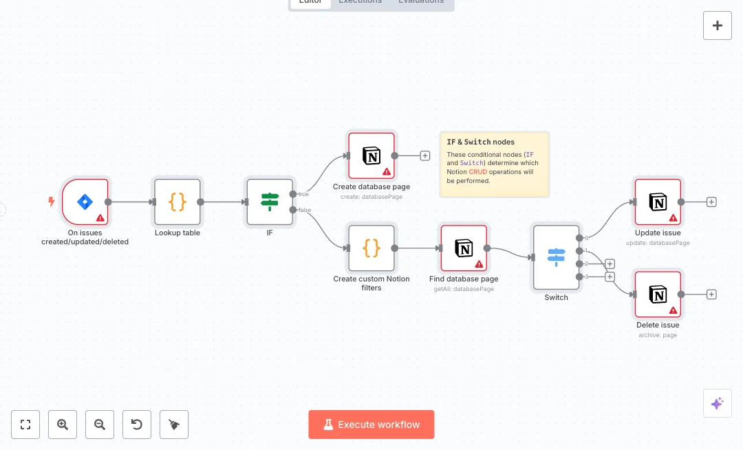 You need a Notion database with Title, Status, Issue Key, and Issue ID fields, plus connected Jira and Notion credentials in n8n Cloud. Expect less double entry, fewer status errors, and faster reporting. This setup is ideal when engineers live in Jira and stakeholders track progress in Notion. Update the status mapping to match your Jira workflow and paste your Notion database ID into the Notion nodes.