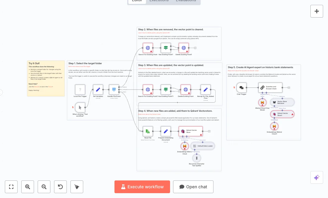 Setup needs a folder that n8n can access, a reachable Qdrant collection, and a Mistral API key. Expect faster close cycles and fewer manual lookups, with answers in minutes instead of hours. Useful for month end reviews, audits, and vendor checks where people need quick facts from many documents.