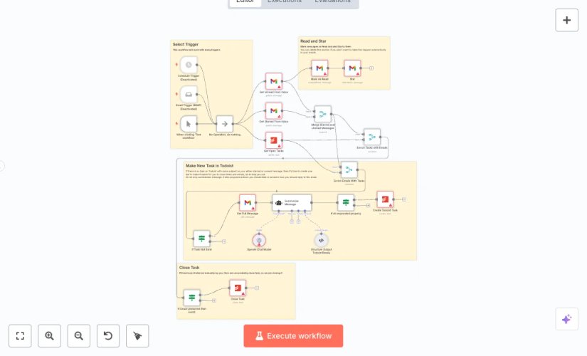 Here is how it runs. A Gmail event pulls each new email and an AI model assigns labels like automation or music, then applies them in Gmail. A webhook path can also post details to a Slack channel for quick alerts. For document Q and A, the flow downloads a PDF, splits it into chunks, creates embeddings with an AI model, and stores them in Pinecone. A chat entry searches the vector store and answers with context using an AI chat model. A second chat agent uses another AI model with tools to read calendar availability, keep memory, and confirm a booking.